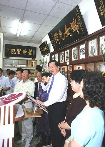 今日非常歡喜能來到咱嘉義市順天堂病院,來參觀咱「嘉義媽祖婆」,也是咱台灣民主運動的前輩,咱嘉義市的老市長許世賢博士一百歲的紀念展。許世賢博士和李萬居、郭國基、郭雨新、李源棧和吳三連等六個人號稱黨外「五龍一鳳」,而且今年也是咱「台灣民主之父」郭雨新老先生百歲的冥誕,以及解除戒嚴二十週年紀念。回想過去台灣所走過的艱難的歲月,所經歷過的不公和不義,咱就一定要好好珍惜、守護咱辛苦打拼、才得到的自由、民主、人權和公義。