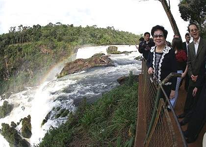 副總統表示,有許多了不起的台灣人選擇東方市作為未來發展的基地,因此,東方市的進步確有台灣人的心血。今天她除了代表台灣政府與人民捐贈2輛道路整平車及1輛救護車給東方市,更率領龐大訪問團拜訪東方市,以感謝東方市提供一個良好的環境讓台灣移民能夠安居樂業。副總統打趣說,巴拉圭現在是冬天,她以為這裡很冷,但訪團帶來了台灣的陽光與熱情,因此今天的天氣非常溫暖、美麗,副總統也祝福台巴友誼長存。在離開東方市之前,副總統也特地去參觀巴國境內最大瀑布—Monday瀑布,體會巴國美麗風光。