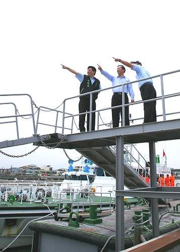 陳總統水扁先生今天南下關心嘉義縣地方建設,在東石鄉港口宮參香之後,轉往布袋鎮瞭解布袋商港、遊艇港、第三漁港等三港與聯外道路及西濱快速道路的規劃與興建進度。
