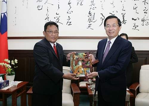 團長薩其敏(Hendrik Sakimin)議員則表示,訪團此次能晉見總統可說是歷史性的一刻,希望今天的會面是兩國互惠合作關係階段的開始,而他此行最重要的任務就是發現台灣、瞭解台灣,他會將此行所見所聞帶回蘇國與蘇國人民分享,也會親自轉達總統對蘇國國會議長、副議長的問候與邀請,更將儘可能促成台蘇兩國在各項領域的交流。
