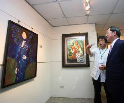 總統觀賞「『鐵窗‧藍天—畫紅塵』—台北監獄藝術班黃絲帶創作群2007新象藝術展」
