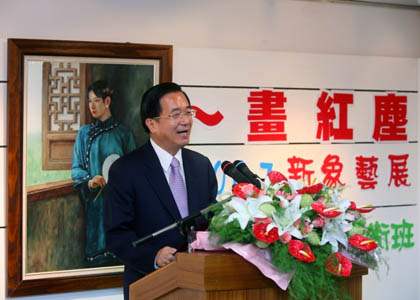 很高興能夠應邀參加今天「鐵窗‧藍天—畫紅塵」的開幕式,台北監獄藝術班自從87年成立以來,今年剛好是第10個年頭,同時也是第4次在國父紀念館舉辦畫展,更寫下監獄收容人的畫作能在國家級藝術殿堂連續舉辦畫展的紀錄,實在是可喜可賀。