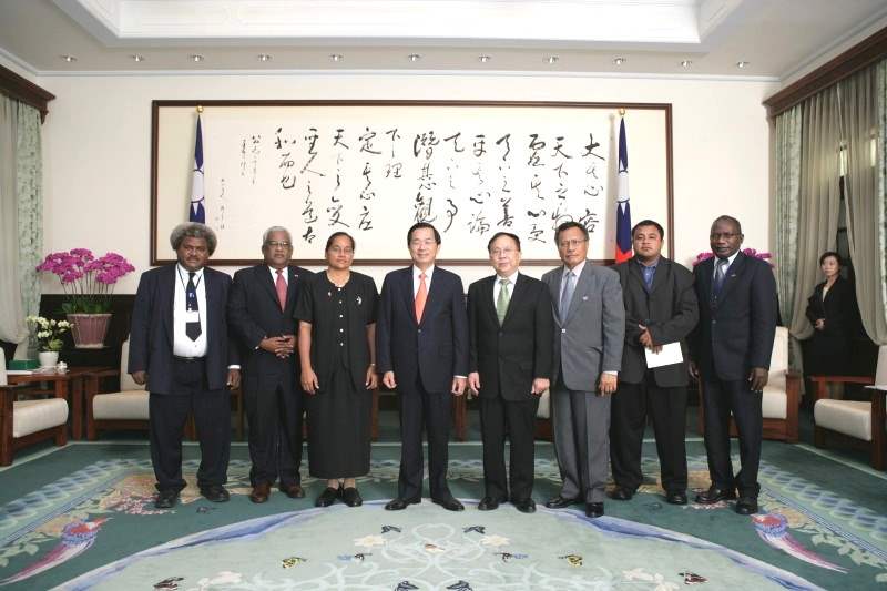 2006年9月4日在帛琉舉行「第一屆台灣與太平洋友邦元首高峰會議」,本人有幸與友邦元首們共同討論區域情勢報告、政府效能建構、衛生醫療合作計畫等重要議題,並簽署了「帛琉宣言」,共同認知「民主價值」為台灣與太平洋友邦鞏固邦誼的基礎,倡議在「能力建構」、「經濟發展」、「社會文化」三大領域內進行合作,優先透過各項措施,以深化海洋民主聯盟、追求建立全方位夥伴關係的目標。