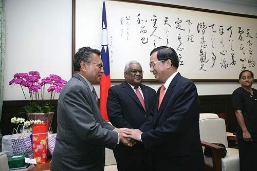 「台灣與太平洋友邦環境部長會議」友邦代表團長,包括吉里巴斯歐泰瑪(Teima Onorio)副總統兼任環境部長、馬紹爾群島總統事務部長菲力浦(Witten Philippo)、帛琉環境品質保護委員會主席柯思巴(Jonathan Koshiba)及索羅門群島森林環境暨保育部長柯瑪克札(Mark Kemakeza),上午在索羅門群島駐台大使吉諾、我國行政院環境保護署署長陳重信及外交部次長張小月陪同,前來總統府晉見總統,總統府副秘書長陳其邁也在座。
