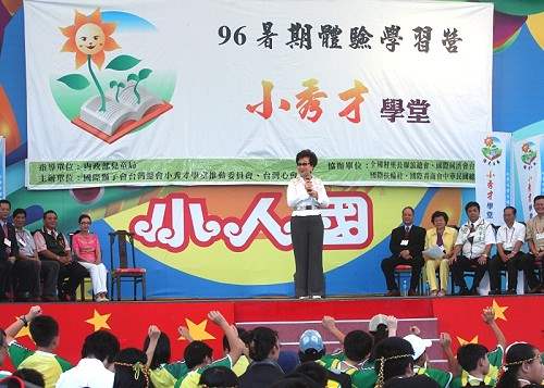 副總統指出,從她推動成立「小秀才學堂」以來,目前已在全國成立了128班,計有2500多位小朋友接受免費課後輔導,幾個月來,許多小朋友學業成績大幅進步,也都很期待上課的機會。副總統告訴小朋友,這背後需要很多人力、物力的投入,代表社會許多人的付出與關懷,因此,她要期勉小朋友們除了在課業更上層樓,也要學習做人的道理,將來成為優秀人才,回饋社會。尤其暑假期間千萬不要浪費,一定要多溫書,並利用時間閱讀課外書籍,為新學期的來臨奠定更好的基礎。