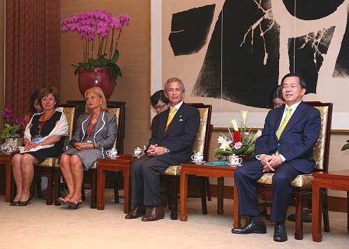 「第32屆世界洋服同業聯盟大會」與會外賓,由世界洋服同業聯盟會長拿波里塔諾(Mario Napolitano)帶領,前來總統府晉見總統,總統府代秘書長卓榮泰也在座。