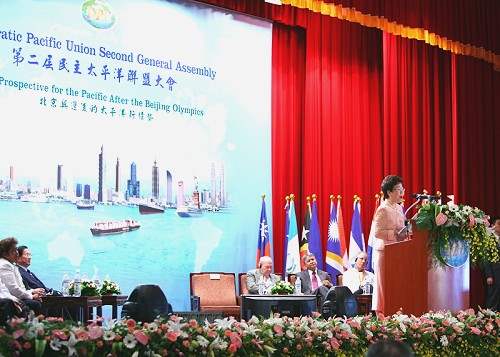 呂副總統秀蓮女士今天上午主持「民主太平洋聯盟」第二屆會員代表大會,並以「用柔性國力改造太平洋」為題致詞。