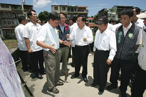 總統是在視察屏東牛埔溪災情、聽取相關簡報後作了以上的表示。總統也表示,過幾天他將出國拚外交穩固邦誼,但在出發之前看到屏東東港地區的災情後心情難過,其實不只他關心,行政院張院長昨天也來到災區視察,下午謝長廷前院長也會前來關心,而昨天晚上人在美國的屏東縣老縣長、行政院前院長蘇貞昌也致電表達關心屏東災情,他說雖然人在美國,心在故鄉,會盡一切可能關心解決。