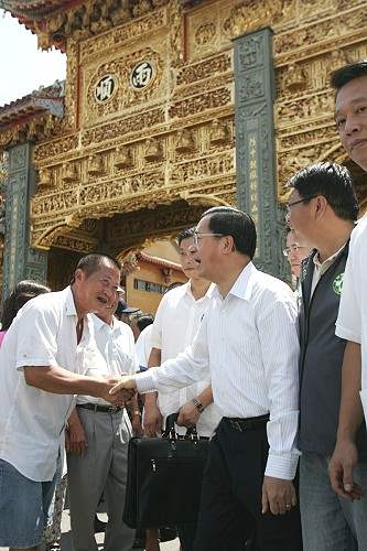 陳總統水扁先生今天上午南下高屏地區關心因颱風過境引進西南氣流豪大雨所造成的災情,並呼籲18、19日將有強颱聖帕颱風侵台,國人千萬不能大意,提早做好防颱措施,作好準備才不會有災損,多一分準備,才能少一分災損。