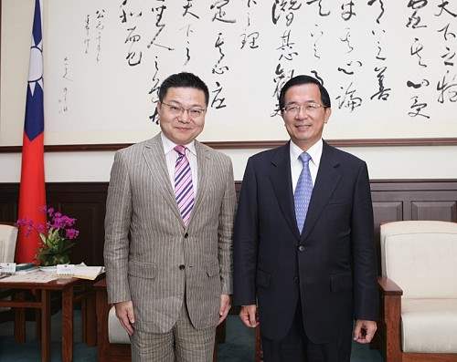 日本佐賀縣知事古川康,下午由外交部次長侯清山與亞東關係協會會長羅福全陪同,前來總統府晉見總統,總統府副秘書長陳其邁也在座。