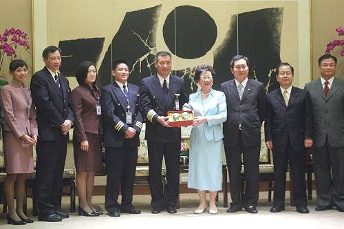 華航那霸事故班機機組員,下午由該公司總經理趙國帥率領,前來總統府晉見副總統。