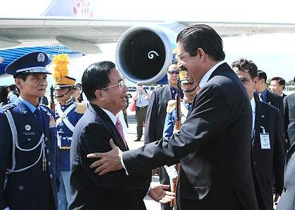 陳總統水扁先生「共創宏景‧永續關懷之旅」於宏都拉斯時間8月21日下午2時許(台北時間8月22日凌晨4時)抵達宏京Palmerola軍用機場,我駐宏國大使賴建中及宏國禮賓司長Edgardo Paz Sierke登機迎接,並陪同陳總統至受禮台,宏國總統賽拉亞(Jose Manuel Zelaya Rosales)迎於受禮台,隨即舉行軍禮歡迎儀式。