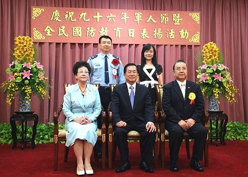 陳總統水扁先生今天中午參加「國防部慶祝96年軍人節暨國防教育日表揚餐會」,再度代表政府和人民,對國軍楷模以及長期投入國防建設的貴賓先進們,表達最誠摯的敬意與由衷的感謝之忱。