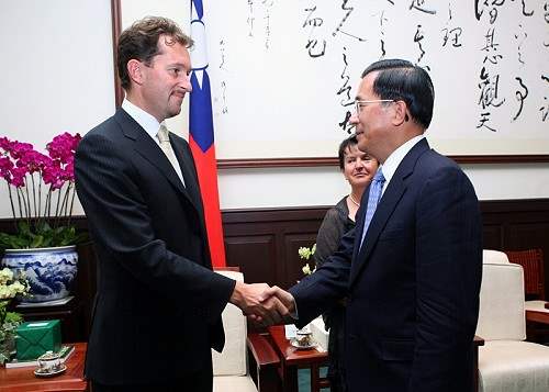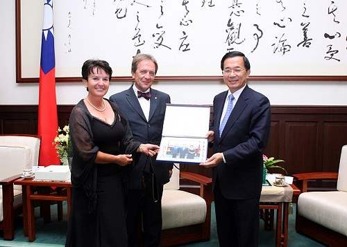 斯洛維尼亞民主黨副主席暨歐洲議會議員布雷茲夫婦及公共行政部長韋朗夫婦,下午由外交部長黃志芳陪同,前來總統府晉見總統,總統府副秘書長陳其邁也在座。