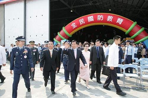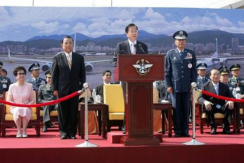 空軍當然與本人接觸和互動最密切的軍種,不論搭乘坐「空軍一號」行政專機至各地視察,或是出國訪問時戰機的護航,在在顯示了空軍講求速度、專業與科技的本色。在此,除了要向全體空軍官兵弟兄與姊妹們表示由衷的感謝與敬意之外,更期待我空軍在國軍各級幹部的卓越領導下,徹底貫徹「早期預警、防敵奇襲、遠距精準作戰」的建軍目標。