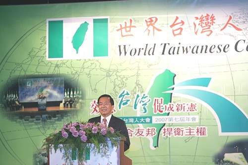 陳總統水扁先生今天上午參加「世界台灣人大會」第七屆年會開幕典禮,並應邀致詞。