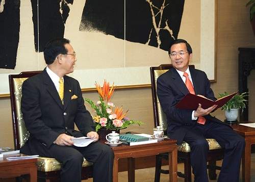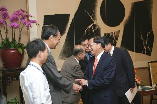 中華民國建築師公會幹部由理事長周光宙帶領,下午前來總統府晉見總統,總統府副秘書長卓榮泰也在座。