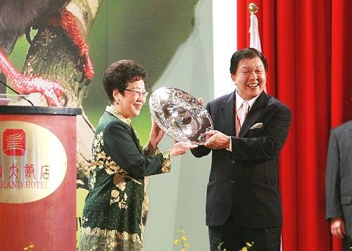 副總統表示,對於分佈於全世界的台商菁英能聚集在圓山飯店,她要特別感謝僑界的大家長—僑務委員會張富美委員長,7年多來,對於遍佈世界各地的台僑、台商所付出的照顧。