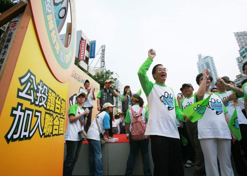 陳總統水扁先生偕呂副總統秀蓮女士今天下午參加在高雄市舉行的「公投護台灣、加入聯合國」大遊行。
