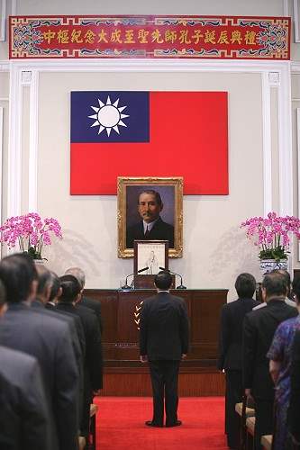 總統府今天舉行「中樞紀念大成至聖先師孔子誕辰暨宣誓典禮」,陳總統水扁先生親臨主持,並聽取行政院新聞局局長謝志偉專題報告。