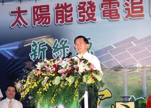 今天能夠來參加太陽能發電(追日獨立型)系統啟用,心裡感到非常的驕傲,這是國人同胞精心研究的重要成果,也讓咱台南縣成為一個環保、節省能原又充滿生命力的縣分。