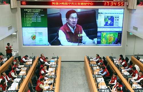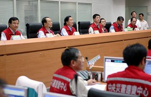 總統並表示,今天他在回台北的路上,看到各地已經出現強風豪雨,心裏非常掛念颱風應變作業的進行,所以一到台北便立刻趕來中央災害應變中心來為大家加油打氣。對各位進駐同仁及救災人員的辛勞,他感到非常地敬佩。尤其是現在各地風雨漸大,陸續已有災情傳出,他請所有救災人員務必堅守崗位,遇有緊急狀況,立即出動救災,但在救災的同時也要注意自身安全。