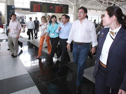 陳總統水扁先生今天陪同率團來台訪問的巴拉圭共和國總統杜華德(Nicanor Duarte Frutos)伉儷搭乘高鐵前往嘉義、雲林地區參訪。