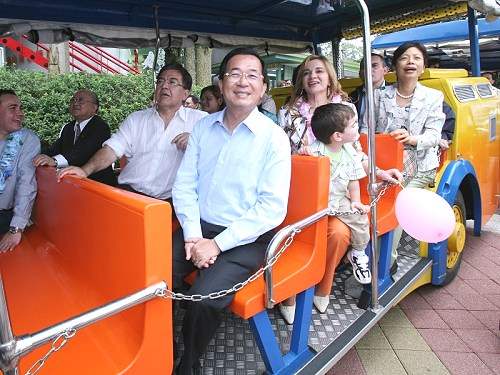 隨後,總統與國賓至雲林劍湖山世界參觀,除遊覽園區,也欣賞精彩的歡樂舞蹈秀與小丑魔術表演,與遊園民眾同歡,共同感受園區充滿活力的熱鬧氣氛。