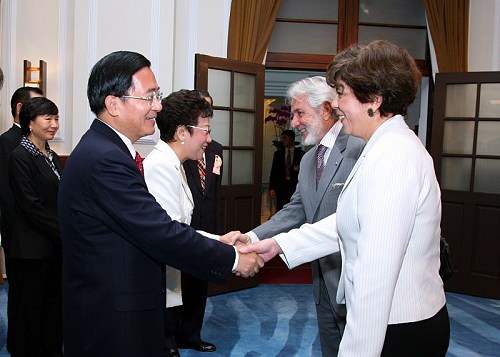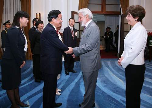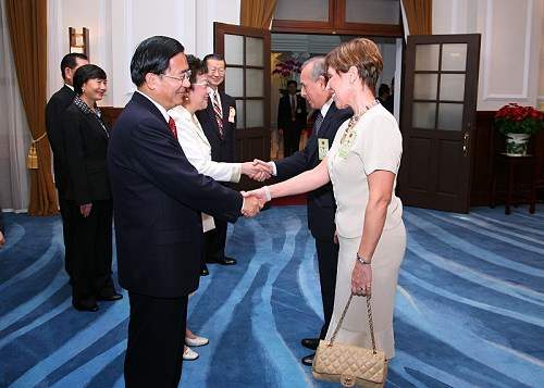 包括巴拉圭總統杜華德(Nicanor Duarte Frutos)伉儷、多明尼加副總統阿布爾格爾格(Rafael Alburquerque De Castro)、史瓦濟蘭眾議院議長古杜札親王(Prince Guduza Dlamini)伉儷等在內的各國外賓,上午9時30分許到總統府參加致賀活動,陳總統與呂副總統親切地與前來致賀的外賓們一一握手致意答謝。總統府秘書長葉菊蘭、外交部長黃志芳在場陪同。