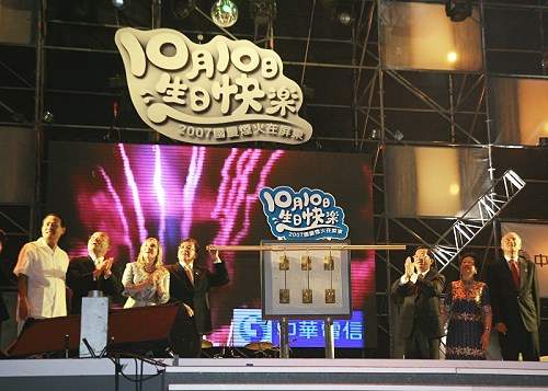 陳總統水扁先生今天晚間偕同率團來訪的巴拉圭共和國杜華德總統伉儷南下屏東大鵬灣觀賞國慶煙火表演,除主持啟動儀式並致詞。