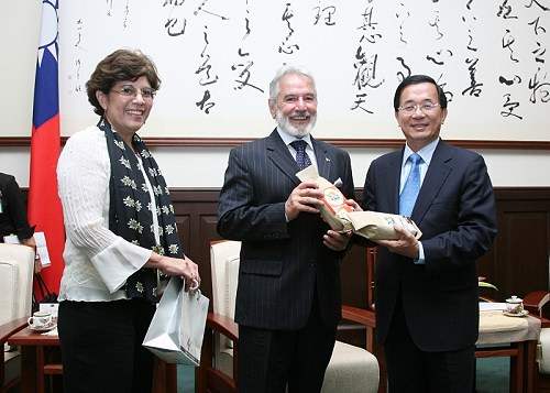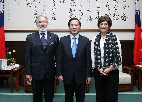尼加拉瓜共和國外交部部長桑多士伉儷一行,包括外交部次長江斯起(Valdrack Jeantschke)、軍督察長卡德隆(Ramón Calderón Vindel),上午由外交部次長侯清山陪同,前來總統府晉見總統,總統府副秘書長陳其邁也在座。