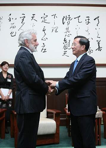 陳總統水扁先生今天上午在總統府接見尼加拉瓜共和國外交部部長桑多士(Samuel Santos López)伉儷,對訪賓來台參加國慶大典,表達歡迎之意。