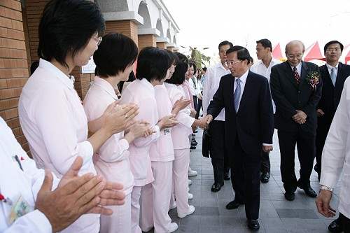 陳總統水扁先生今天上午南下雲林虎尾,為台大醫院雲林分院虎尾院區第一期醫療大樓的啟用揭牌。