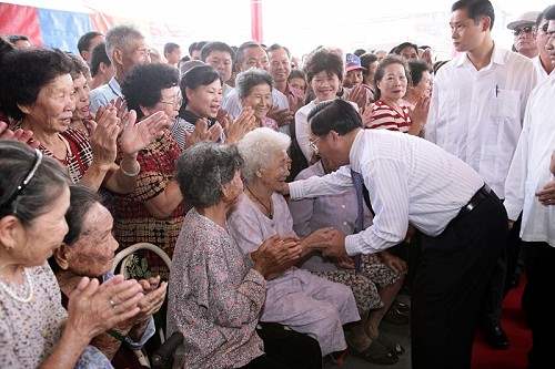 今天也是重陽節,總統下午特別前往北港鎮安泰老人長期照護中心關懷院友,向他們賀節並同歡、頒發加菜金,也致贈壽星禮物,祝賀生日快樂。