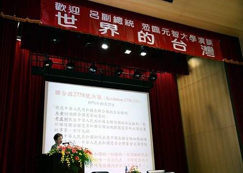 副總統應邀於元智大學以「世界的台灣」為題發表演說
