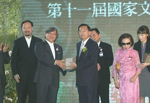陳總統水扁先生今天下午出席在台北賓館舉辦的「第11屆國家文藝獎」頒獎典禮,致詞肯定得獎人的熱情與堅持,透過不同形式所展現的專業與創作能量,傳達出對台灣土地深深的關愛與熱忱,不但感動了國人同胞,更成為台灣文化與藝術向前進步最重要的推力。