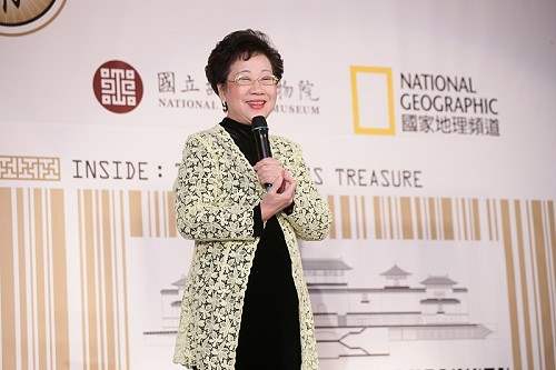 副總統致詞時表示,昨天她在國家劇院欣賞63歲的歌仔戲國寶楊麗花女士,在息影後重新登台演出的精彩戲碼,見證了真正的old is new;而今晚,在此首映會上,她不僅印證了old is new,更看見了east is west,因為國家地理頻道與故宮博物院林曼麗院長合作,將故宮維護珍貴寶藏的過程公諸於世人眼前,成為人類新的未來,用心值得嘉勉,也不啻東西方的完美融合。