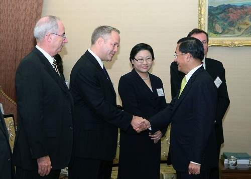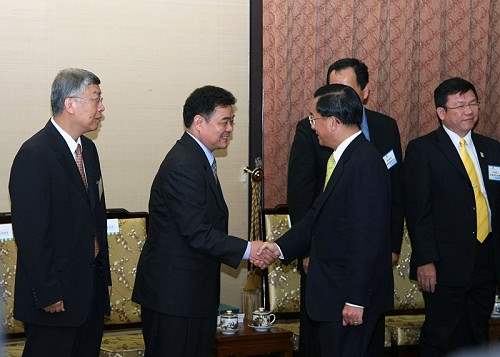 96年全國優良商人、優良外國駐台商務單位暨優良外商,今天上午由中華民國全國商業總會理事長張平沼帶領,前來總統府晉見總統,總統府副秘書長陳其邁也在座。