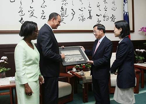 聖多美普林西比民主共和國國會議長范士華、國會議員利達(Cosme Bonfim Afonso Rita)、國會議員阿馬杜(Jorge Amado)、國會議員周利馬(Julio Smith Lima),由我外交部次長楊子葆與聖國駐台大使戴爾梅達(Ladislau D'Almeida)陪同,前來總統府晉見總統,總統府副秘書長林佳龍也在座。