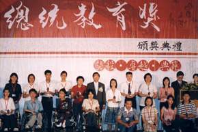 陳總統水扁先生今天下午參加第二屆「總統教育獎」頒獎典禮,並親自頒獎給五十九位得獎同學,以肯定他們身處逆境卻能不屈不撓、奮發向上、樂觀進取的偉大表現。