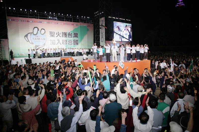 陳總統水扁先生偕同呂副總統秀蓮女士今天晚間出席在總統府府前廣場舉辦的「全民傳聖火、前進聯合國」結束儀式。