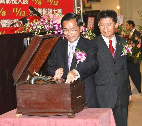 陳總統水扁先生今天上午為「第28屆台北音響影視大展」開幕剪綵,致詞後也參觀影音時光隧道及參展攤位。
