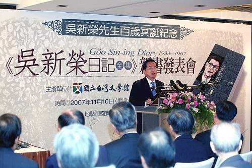 陳總統水扁先生今天上午出席「吳新榮日記全集新書發表會」,並應邀致詞。