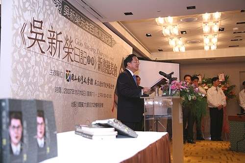 吳新榮醫師出身台南縣將軍鄉,我也是台南縣官田鄉人,過去在讀書的時候就知道這位出名的前輩鄉親,他不但是一位濟世救民的好醫生,也是台灣重要的文學家。吳新榮醫師的公子南河兄、南圖兄都是一路鼓勵、支持我、也是我最尊敬的好朋友。所以,雖然我的幕僚今天已經安排超過10 個行程,等一下還要去苗栗、新竹,但我還是堅持要來參加新書發表會,因為這不只是對本人、對台灣都有相當特別的意義。