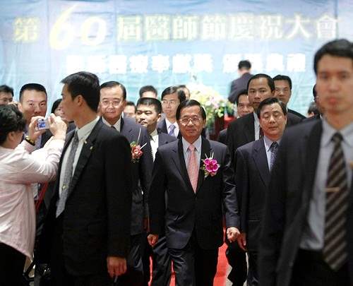 陳總統水扁先生下午應邀出席在台北國際會議中心舉辦的醫師公會全國聯合會第60屆醫師節慶祝大會,除應邀致詞感謝全國醫師前輩先進長期奉獻、照顧病人、改善國人的健康,並接受該會呈遞的醫療政策建言書。