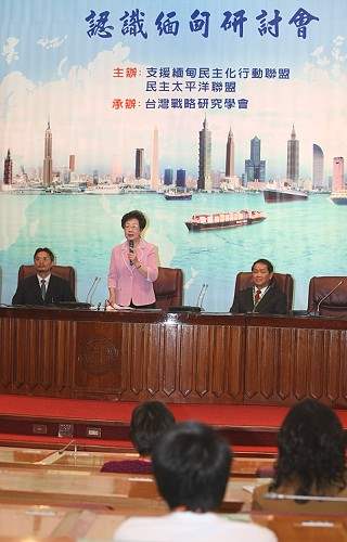 呂副總統秀蓮女士今天上午出席由「支援緬甸民主化行動聯盟」在台北市國家圖書館所舉辦的「認識緬甸研討會」,期勉在場來自亞洲各國,包括緬甸在台的留學生,將所學貢獻給國家,促進亞洲地區民主化發展,同時協助緬甸邁向民主,與其他國家享有同樣的自由及人權。