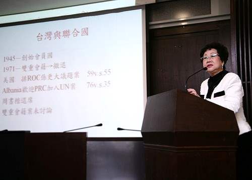 副總統也以波羅的海三小國脫離蘇聯統治,成功加入聯合國為例表示,波羅的海三小國在爭取獨立時,雖歷經一段困難與痛苦的抗爭,但最後獲得國際支持,不僅造成蘇聯解體,也順利成為聯合國會員,湊巧的是,在1991年她第一次前往聯合國為台灣發聲時,剛好看到波羅的海三小國的國旗在聯合國大樓前升起,心中感觸甚深,波羅的海三小國能,台灣當然也可以,因此她力推台灣加入聯合國,但卻受到當時舊政府的跳票,迄至現今才由陳總統正式提出,為台灣的國際空間伸出正義之手。