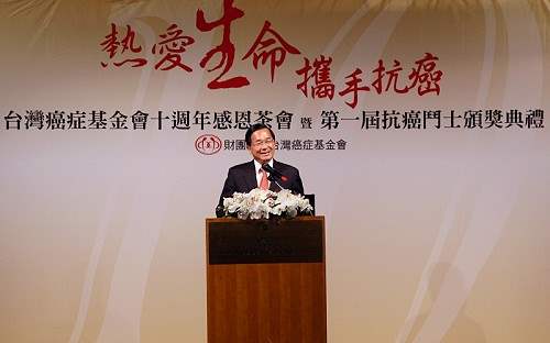 總統出席「熱愛生命.攜手抗癌-台灣癌症基金會10週年感恩茶會暨第一屆抗癌鬥士頒獎典禮」
