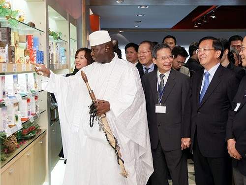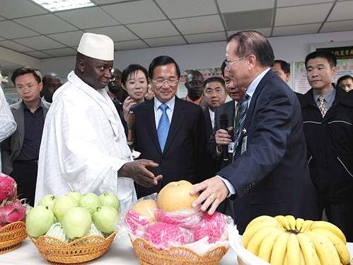 陳總統水扁先生今天中午陪同率團來台訪問的甘比亞共和國總統賈梅(Yahya A.J.J.Jammeh),搭乘高鐵南下台中訪視。