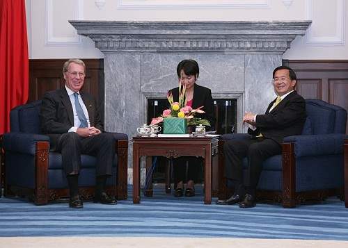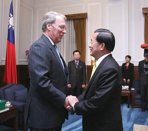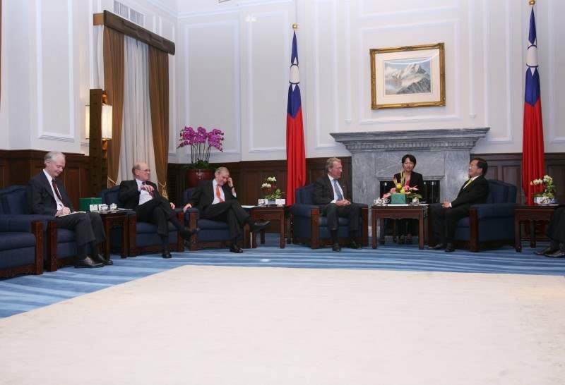 薄瑞光理事主席、美國國務院台灣協調處處長史伯明(Douglas Spelman),下午由外交部長黃志芳、美國在台協會處長楊甦棣、政治組副組長Finegan陪同,前來總統府晉見總統,總統府副秘書長林佳龍也在座。